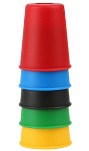 顏色的聽覺記憶使用不同顏色的疊杯(圖2)進行訓練,以下列句型練習:「把紅色放到綠色 上面」,長輩同時需要記憶顏色,也要記憶疊杯的相對位置,依據練習狀況增加難度。